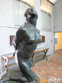驚いたのは、碌山が、芸術家のパトロンとして知られた新宿中村屋の創業者の妻、相馬黒光の(おそらく)最初に支援を受けた人物であった、ということ。愛人関係であったかどうかはわからないが、少なくとも、黒光は亭主の浮気で悩み、碌山は青年期に芸術に目を開かせてくれた黒光に憧れていた。黒光は店が終わると、毎日のように、中村屋が借りてあげた碌山のアトリエに入り浸っていたらしい。