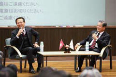 調べてみると、岡田監督は昨年の稲門祭にも出席しており、川淵三郎日本サッカー協会名誉会長(1961年商学部卒、本学特命教授)とのトークショーで「世界を驚かす覚悟がある」と語っているんですね。
