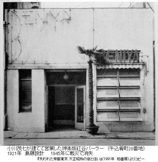 店主は風月堂で修行した小川茂七で、関東大震災後、下町から山の手に人口が移動したこともあり、大いに繁盛したという。店の隣には写真の「パーラー」があり、一昔前の喫茶店なのだが、当時としてはウルトラモダンだったろう。
